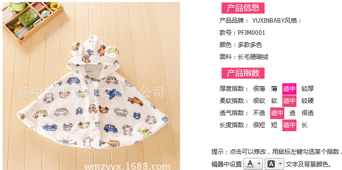 •   產(chǎn)品名稱:嬰兒披風(fēng)斗篷加厚